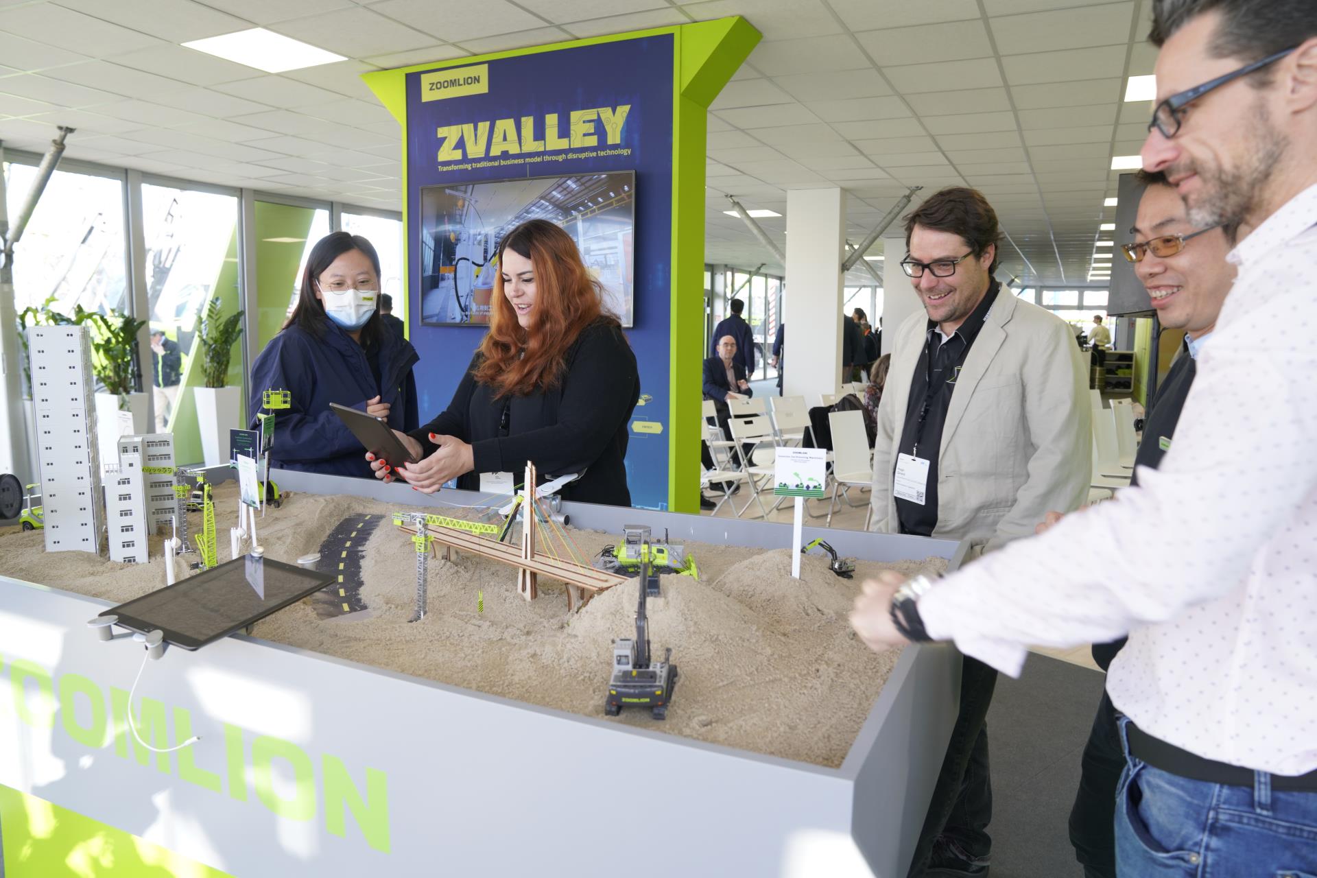在展區(qū)一樓的互動體驗區(qū),中聯(lián)重科打造了微景觀建筑,通過實景VR對海外大型工程項目進行三維虛擬精確設計和施工模擬,讓觀眾近距離感受工程機械工況和操作體驗,還有互動PK賽、現(xiàn)場掃碼打卡贏好禮等各種互動體驗版塊和LED互動屏,讓觀眾更好地體驗和感受到中聯(lián)重科的新科技、新成果。