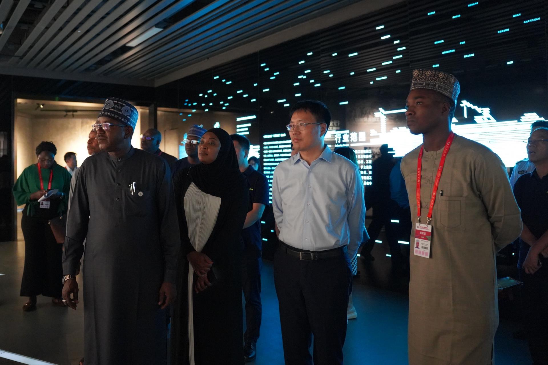 ▲多個非洲國家經(jīng)貿(mào)代表團參觀考察中聯(lián)智慧產(chǎn)業(yè)城