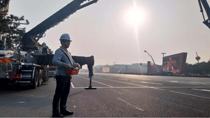 作為行業(yè)內(nèi)唯一一家助力此次央視直播的裝備制造企業(yè),中聯(lián)重科出動(dòng)了汽車起重機(jī)、泵車、消防機(jī)械、高空作業(yè)平臺(tái)等近20臺(tái)高端裝備,在天安門廣場(chǎng)、長(zhǎng)安街沿線多個(gè)重要拍攝點(diǎn),承擔(dān)了天鷹座、萬(wàn)向鷹眼索道的支撐搭建,高機(jī)位支撐,以及特殊機(jī)位拍攝等相關(guān)工作。