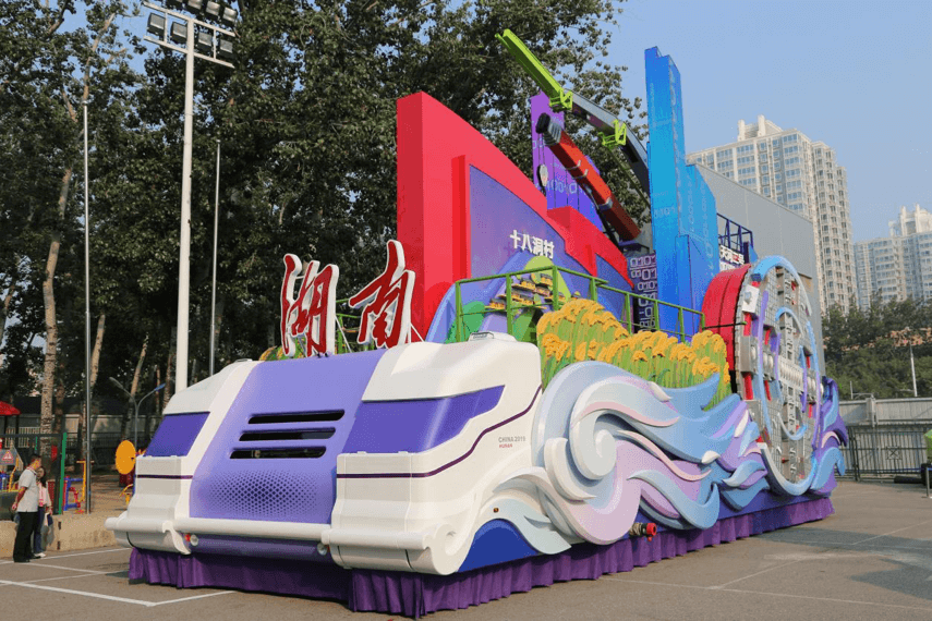 湖南彩車“瀟湘今朝”使用工程機(jī)械產(chǎn)品為底盤,既以湖南工程機(jī)械特色元素展現(xiàn)了湖湘兒女新時(shí)代的奮進(jìn)足音、傳遞對(duì)中華人民共和國(guó)70華誕的殷切祝福,也向全球觀眾展現(xiàn)了工程機(jī)械湘軍的卓越風(fēng)采和“湖南制造”的強(qiáng)大實(shí)力。
