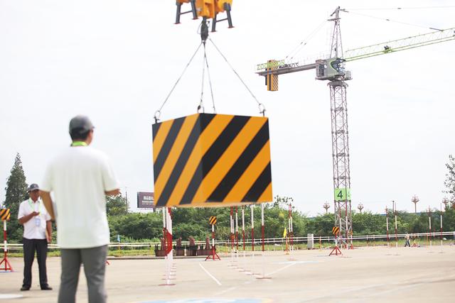 ▲2017年“中聯(lián)杯”全國吊裝競賽,選手正在進行實際操作比賽