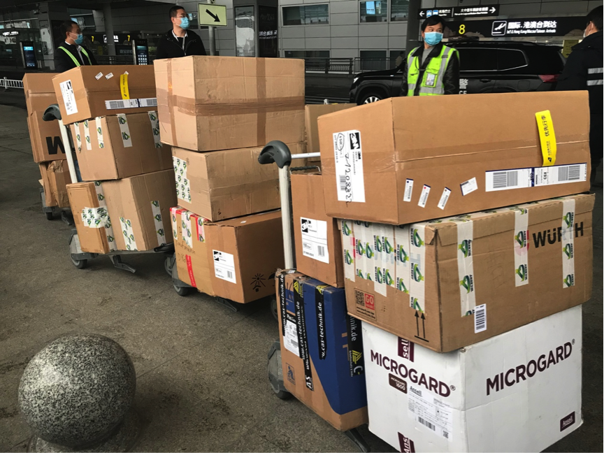 中聯(lián)重科國際業(yè)務(wù)管理部部長李賓介紹道:“在德國,中聯(lián)重科采購的物資全部匯聚到位于法蘭克福機(jī)場附近的中聯(lián)重科德國威爾伯特公司內(nèi),為了**一時間將這些物資運(yùn)到中國,威爾伯特的員工們都在加班加點進(jìn)行物資的打包、運(yùn)輸工作,我們有位德國小伙子,上午剛登記結(jié)婚,本應(yīng)該開始休婚假,但他下午就又趕回工廠繼續(xù)工作,所有人都在竭盡全力支持中國抗擊疫情。”