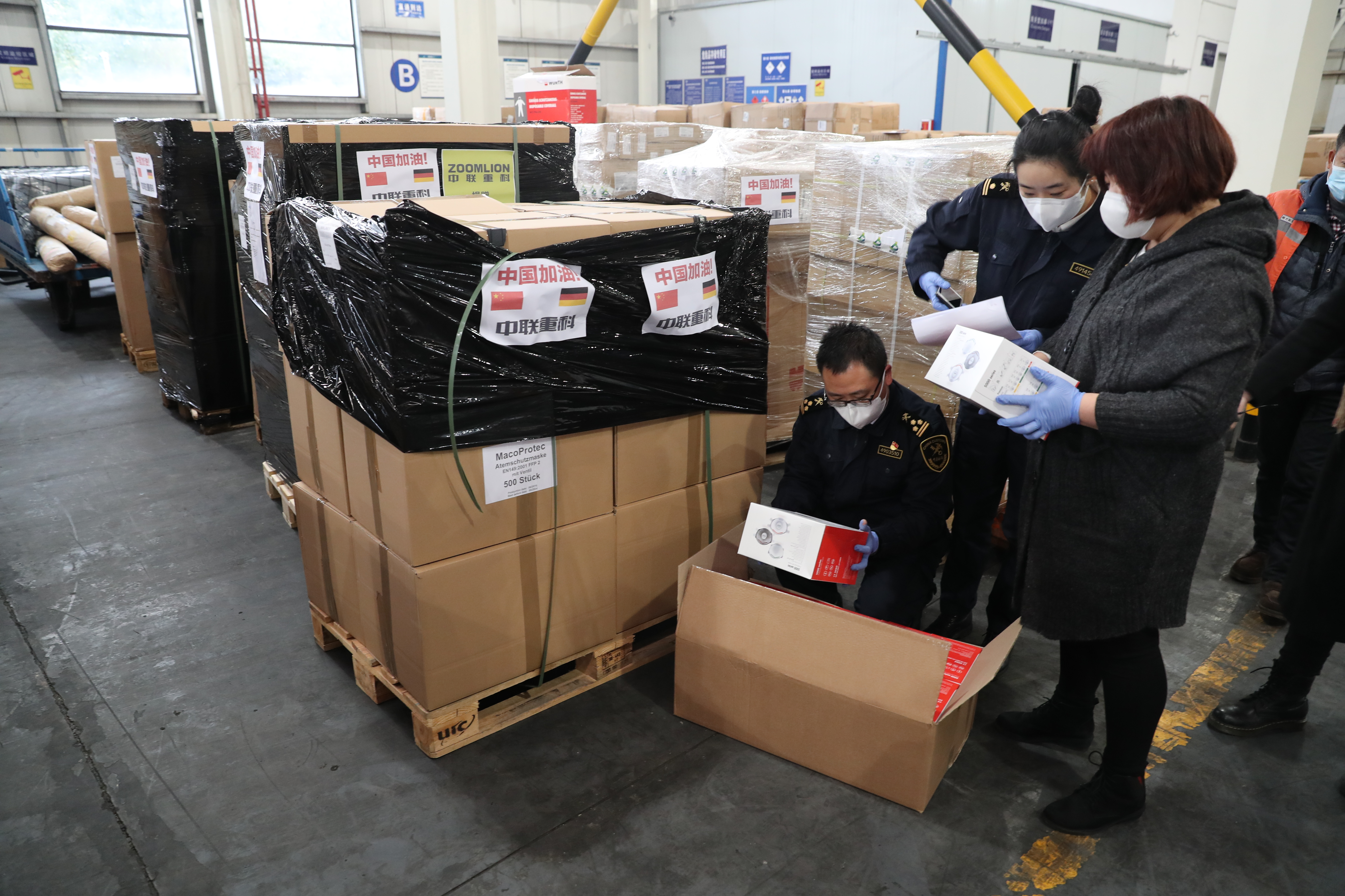 中聯(lián)重科從德國(guó)采購(gòu)的逾13萬(wàn)件醫(yī)護(hù)物資抵達(dá)長(zhǎng)沙黃花機(jī)場(chǎng)