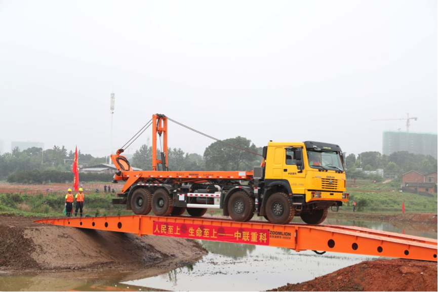 △中聯(lián)重科重型工程機(jī)械應(yīng)急救援隊(duì)迅速搭建臨時(shí)橋梁