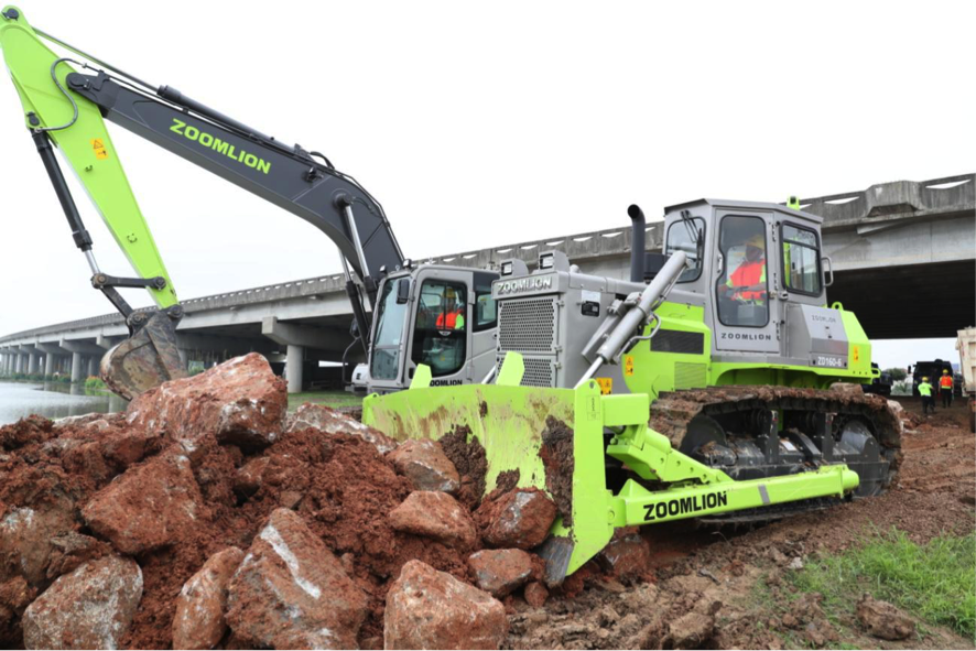 ? ?參與此次演練的中聯(lián)重科ZE205E-10挖掘機(jī)和ZD160-6推土機(jī)都是公司的拳頭產(chǎn)品。ZE205E-10配備定制化液壓系統(tǒng)精心匹配動(dòng)力系統(tǒng),擁有精準(zhǔn)靈敏的操作體驗(yàn);結(jié)構(gòu)件及底盤一體化大截面成型、底盤加厚加寬重載型設(shè)計(jì),堅(jiān)固耐用;動(dòng)力強(qiáng)勁可靠;駕駛室配備懸浮座椅并通過落物安全保護(hù)、翻滾安全保護(hù)認(rèn)證。 ZD160-6推土機(jī)配備160馬力推土機(jī)搭載濰柴高標(biāo)準(zhǔn)電控發(fā)動(dòng)機(jī),節(jié)能環(huán)保,高效低耗,動(dòng)力強(qiáng)勁。兩款產(chǎn)品能夠全面滿足和應(yīng)對(duì)不同應(yīng)急救援的土方作業(yè)要求。