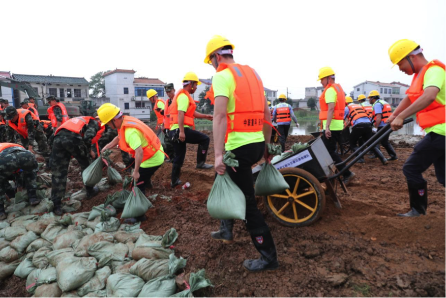 △中聯(lián)重科重型工程機(jī)械應(yīng)急救援隊(duì)緊張有序地進(jìn)行封堵決口