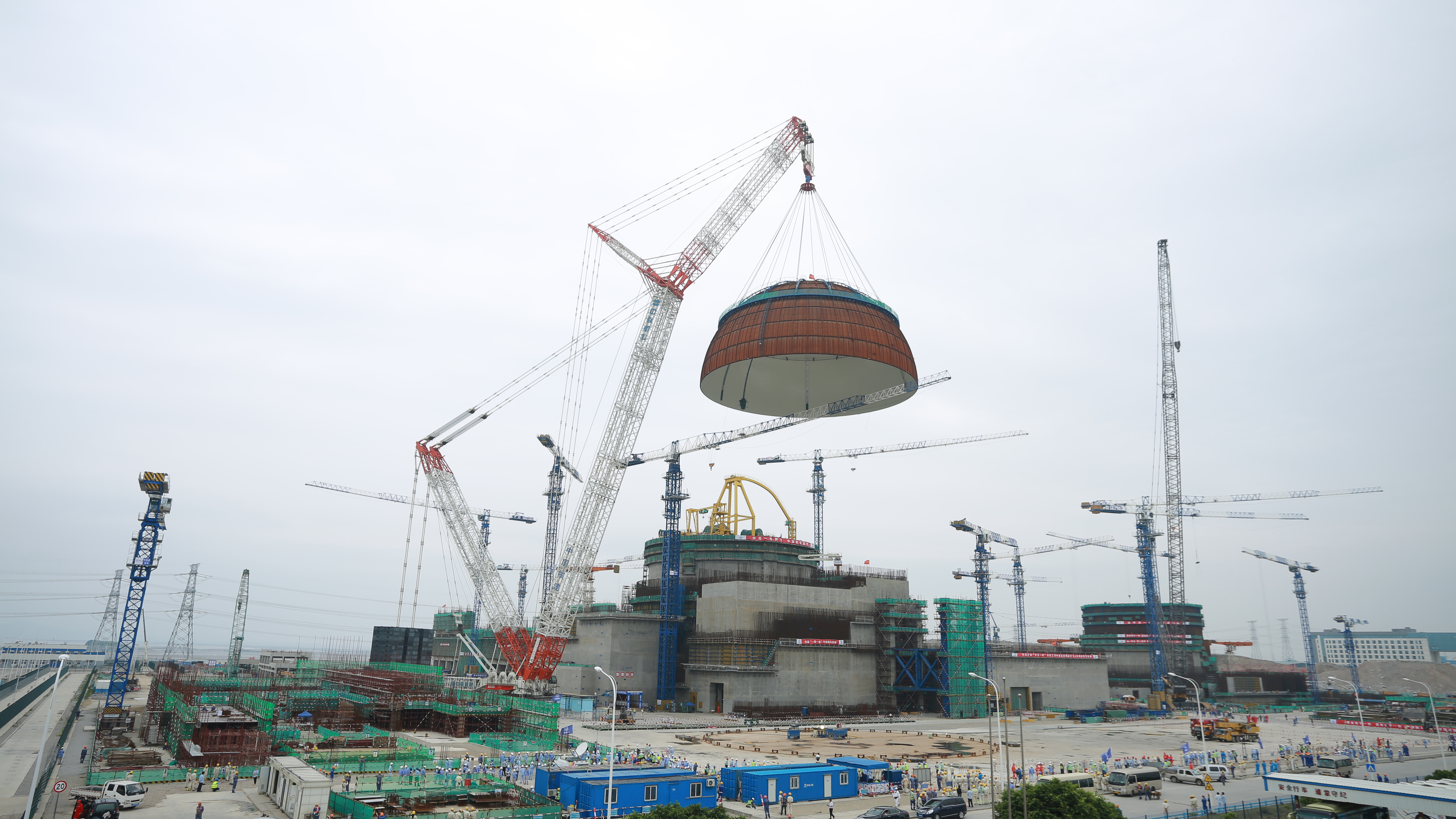 ? ?中聯(lián)重科技術(shù)人員介紹道:“我們的3200噸履帶吊已經(jīng)為福清核電的5號、6號機組進行了兩度‘加冕’,都圓滿地完成了任務(wù)。這次吊裝,從吊裝重量及穹頂體形來看,難度都更大。2018年吊裝的穹頂重約342噸,此次吊重約420噸;前兩次穹頂直徑為46.8米,此次吊裝的安全殼穹頂直徑為53米?!?/span>