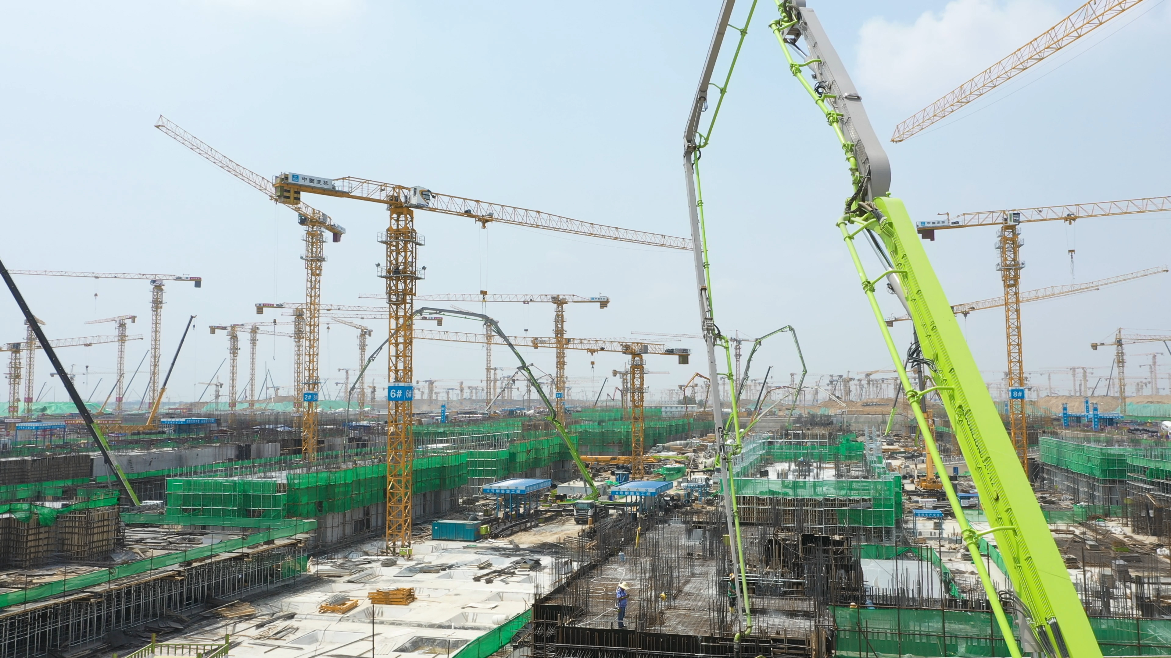 盛夏雄安,烈日炎炎,在廣大建設(shè)者拼搏奮斗下,雄安新區(qū)各重大項(xiàng)目建設(shè)捷報頻傳:京雄城際鐵路雄安站站房橢圓形水滴狀造型初現(xiàn),容東片區(qū)安置房及綜合管廊等工程均按時按質(zhì)完成節(jié)點(diǎn)任務(wù),雄安商務(wù)服務(wù)中心會展中心工程主體結(jié)構(gòu)7月底已封頂。在這座“未來之城”的建設(shè)現(xiàn)場,中聯(lián)重科塔機(jī)林立、混凝土機(jī)械、汽車起重機(jī)等各類設(shè)備成群作業(yè),熱火朝天的建設(shè)圖景甚為壯美。