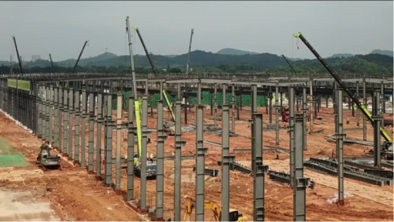 經(jīng)過三百多個日日夜夜的辛勤付出,建設(shè)目前已經(jīng)進入“全面開花”階段,挖掘機械智能制造園區(qū)高強鋼備料中心、中大挖結(jié)構(gòu)件車間等六大單體鋼構(gòu)全面進入主體吊裝階段,其中高強鋼備料中心6萬平米的鋼結(jié)構(gòu)安裝已全部完成,調(diào)試車間、中大挖裝配車間主體鋼構(gòu)已經(jīng)吊裝完成,正在進行次結(jié)構(gòu)施工,其余廠房建設(shè)也在有序推進當中,“鋼鐵森林”已經(jīng)拔地而起。
