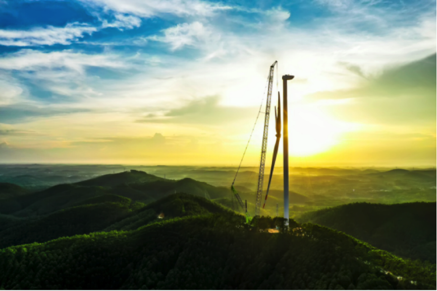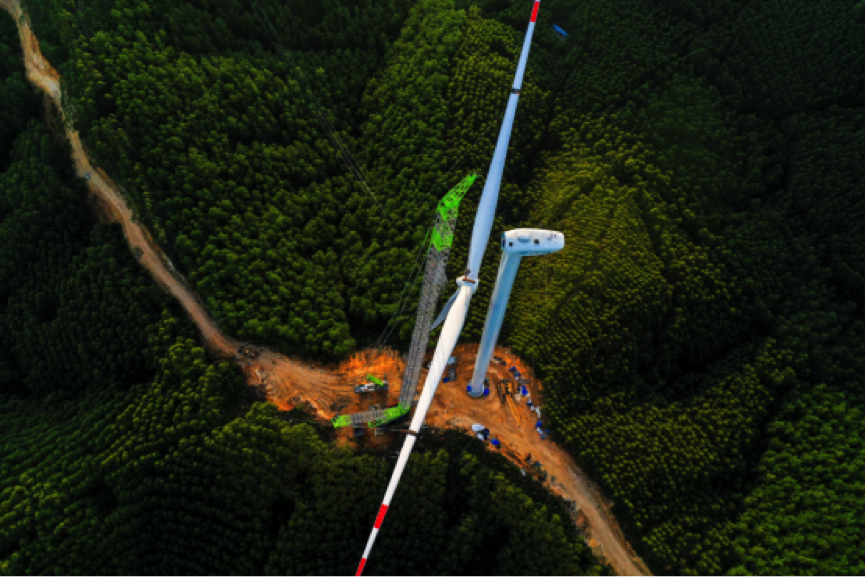 合浦曲樟風(fēng)電場工程位于廣西合浦縣東北部,這里風(fēng)力資源豐富,然而想要利用這些大自然的饋贈并非易事。風(fēng)電場選址在植被茂密的丘陵地區(qū),交通不便、土質(zhì)較軟,而且因在丘陵頂端,開辟出的施工場地非常狹小。要在這樣的山地工況下吊裝140米高的風(fēng)電塔,國內(nèi)尚無前例,施工前,行業(yè)內(nèi)對此項目能否順利進行一直有著各種各樣的猜測。