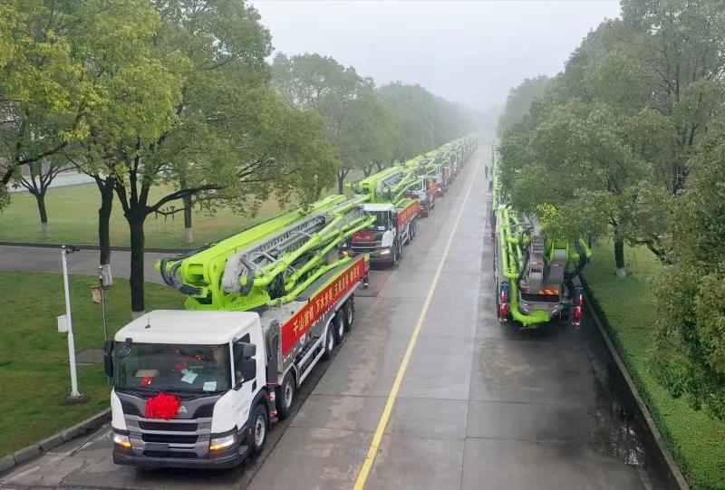 ▲中聯(lián)重科混凝土泵車從麓谷工業(yè)園緩緩駛出