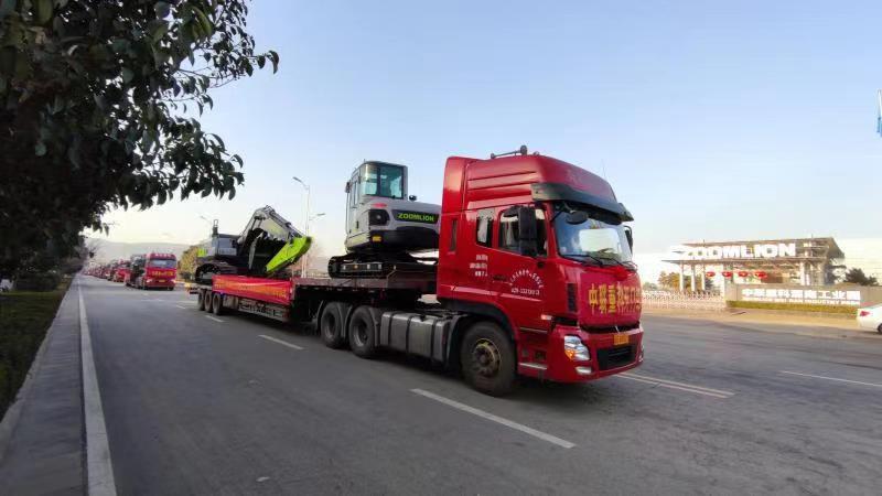 ▲中聯(lián)重科挖掘機(jī)、推土機(jī)從渭南工業(yè)園緩緩駛出奔赴全國