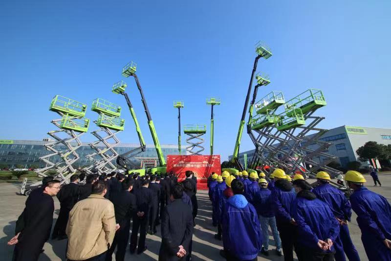 ▲中聯(lián)重科高空作業(yè)機(jī)械公司開門紅發(fā)車儀式現(xiàn)場