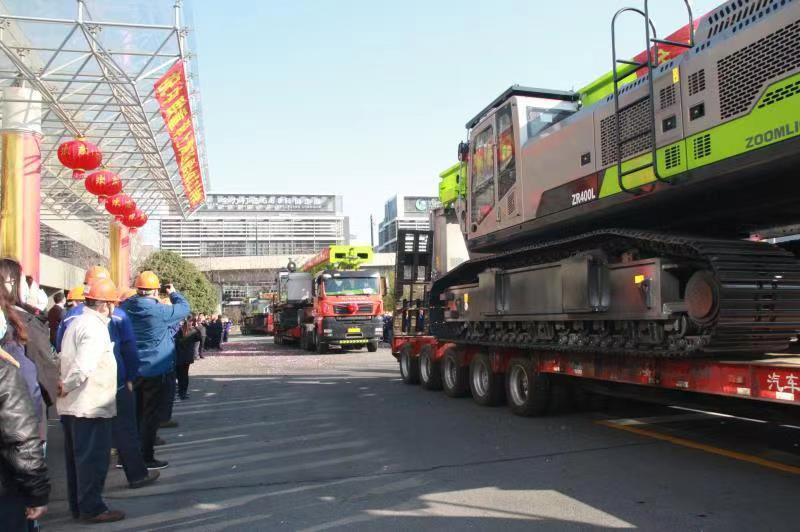 ▲中聯(lián)重科樁工設(shè)備從上海工業(yè)園啟程交付客戶
