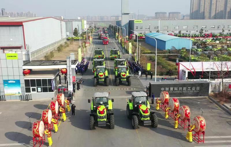 ▲中聯(lián)重科農(nóng)機(jī)產(chǎn)品起運(yùn)交付各地