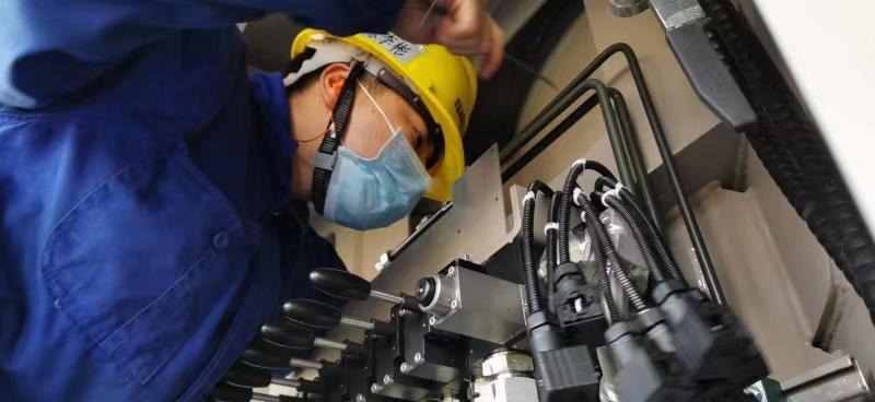 ▲在中聯(lián)重科麓谷工業(yè)園,工人正在安裝調(diào)試混凝土泵車