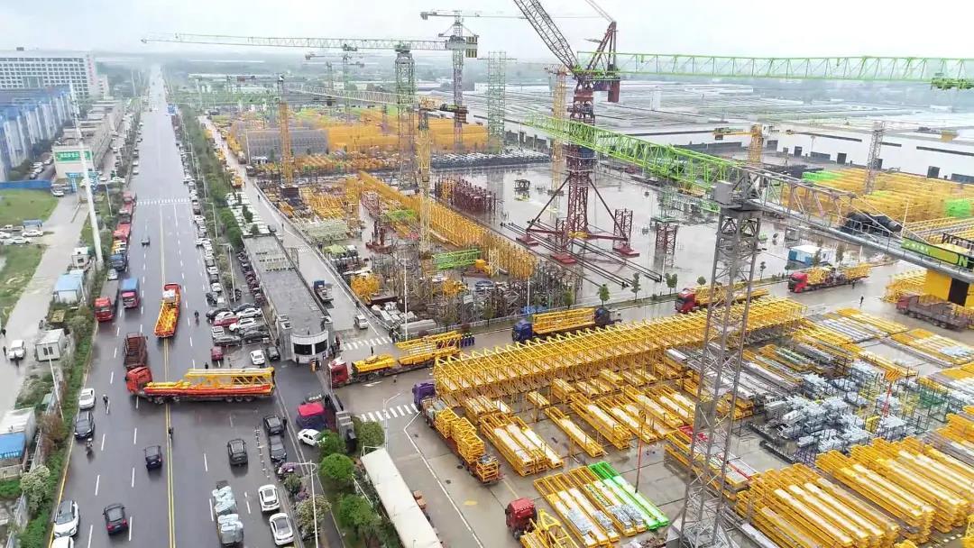▲中聯(lián)重科T1200-64門架式塔機出口印尼發(fā)貨現(xiàn)場