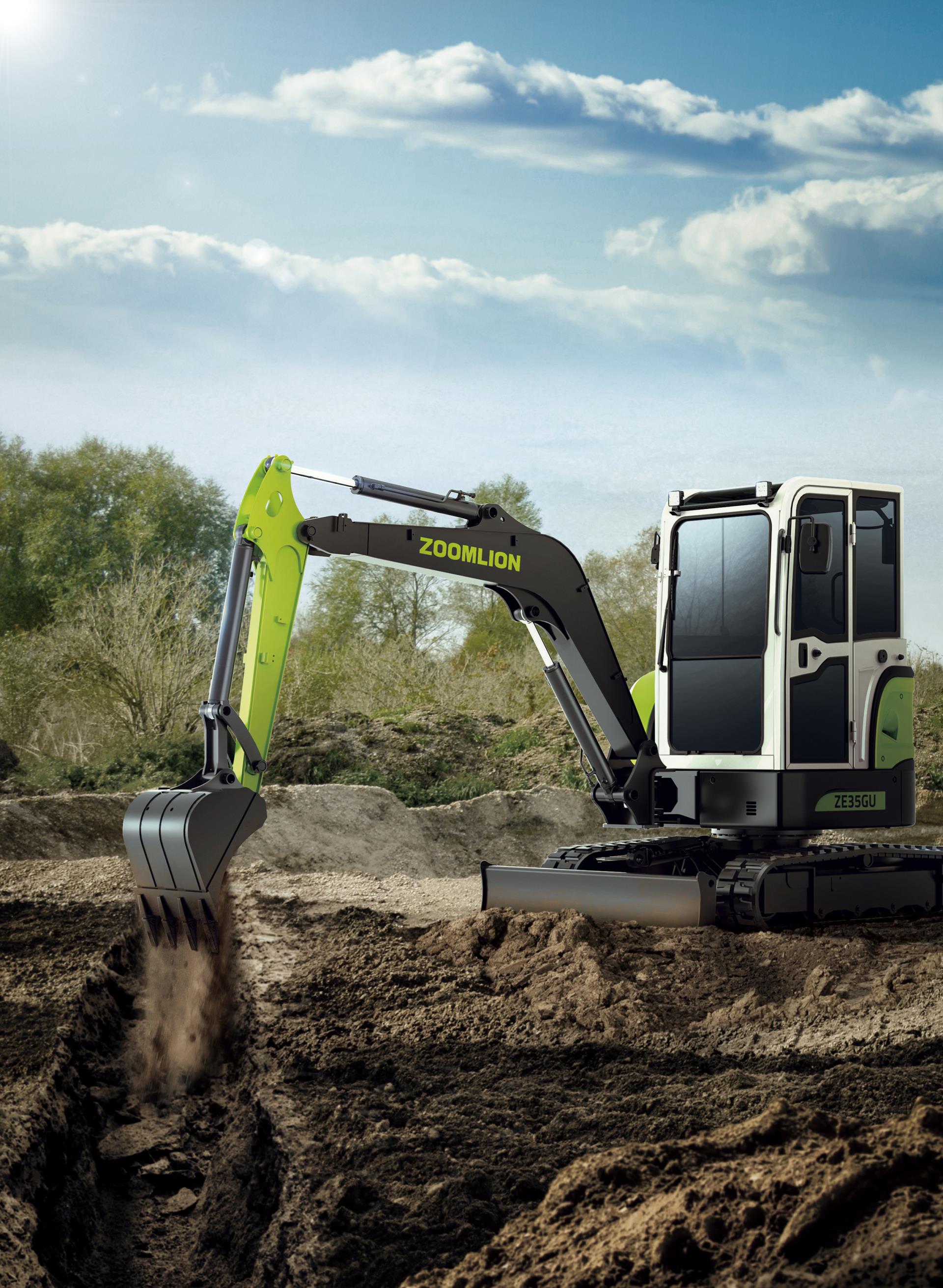 ▲中聯(lián)重科參展的ZE18GU,ZE26GU,ZE35GU挖掘機(jī)