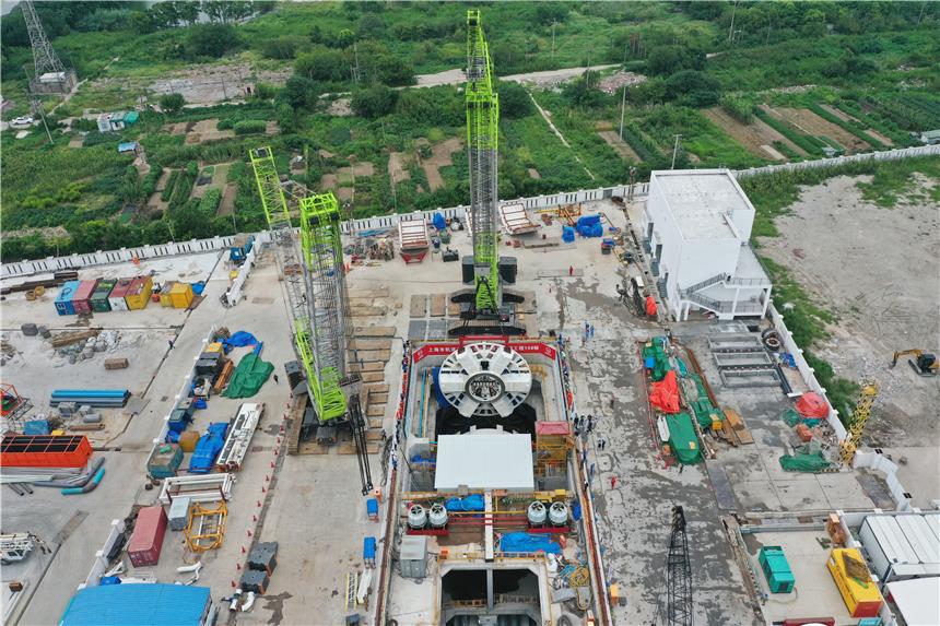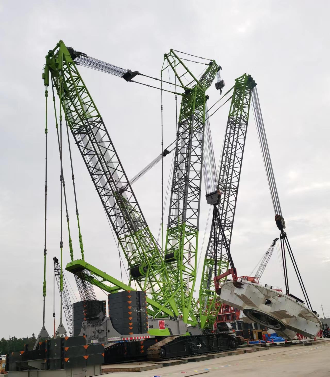 據(jù)了解,此次項(xiàng)目吊裝的“申通號”盾構(gòu)機(jī)總長為148米,采用常壓刀盤設(shè)計(jì)。盾構(gòu)機(jī)刀盤直徑有13.5米,重達(dá)308噸,由一個中心塊、6個主刀臂和6個輔刀臂焊接拼裝組成。中聯(lián)重科兩臺履帶起重機(jī)吊裝“申通號”盾構(gòu)機(jī)下井,為其完成崇明線南港越江段區(qū)間的掘進(jìn)施工提供助力。全長7.74千米的南港區(qū)間隧道貫通后,將成為“上海軌道穿越長江**一隧”。