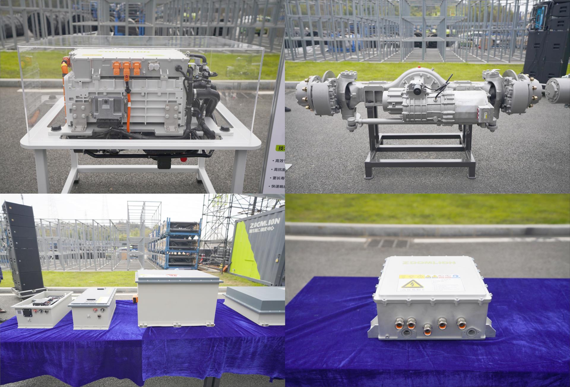 ▲中聯(lián)重科打造的新能源關(guān)鍵零部件和新能源重型通用底盤