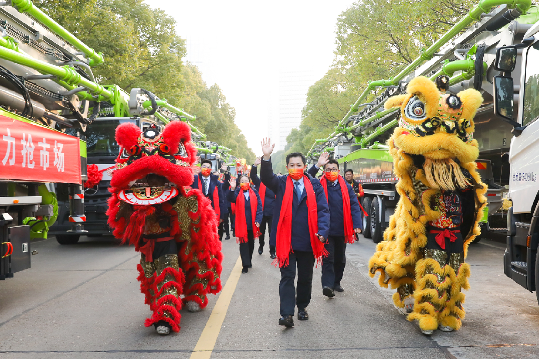 △中聯(lián)重科混凝土泵送機械2023年開門紅發(fā)車儀式現(xiàn)場