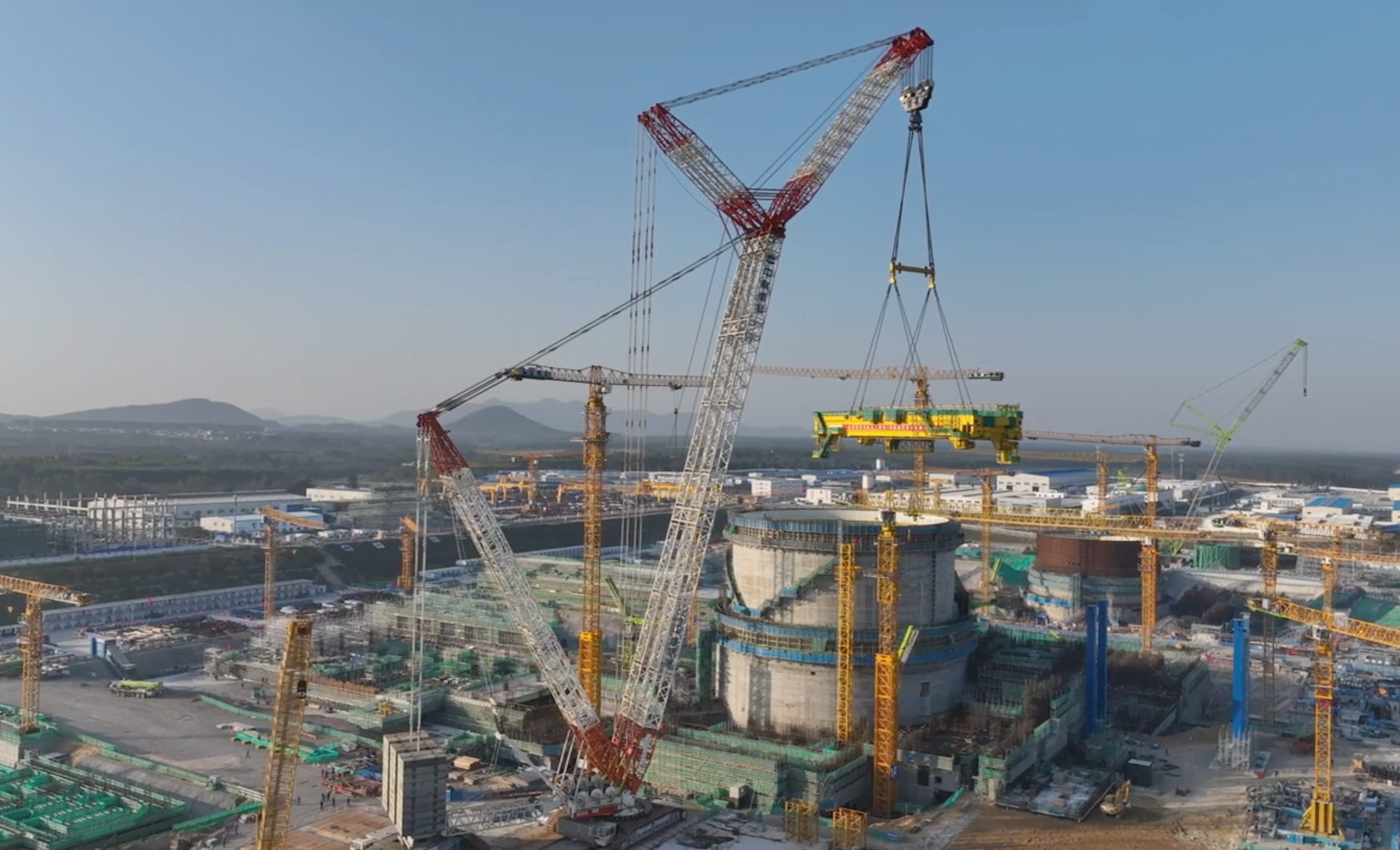 此前,海南昌江核電3號機(jī)組環(huán)梁環(huán)軌吊裝,也是在中聯(lián)重科ZCC3200NP履帶起重機(jī)的平穩(wěn)吊裝下精準(zhǔn)就位,拿下新年“開門紅”。此次環(huán)吊主梁的順利就位,為3號機(jī)組穹頂?shù)跹b創(chuàng)造了必要條件,也為后續(xù)主設(shè)備安裝提供了先決保障。中聯(lián)重科將繼續(xù)主動(dòng)擔(dān)當(dāng)、積極作為,持續(xù)打造高性能標(biāo)桿裝備,為我國核電事業(yè)高質(zhì)量發(fā)展貢獻(xiàn)硬核的重工力量。
