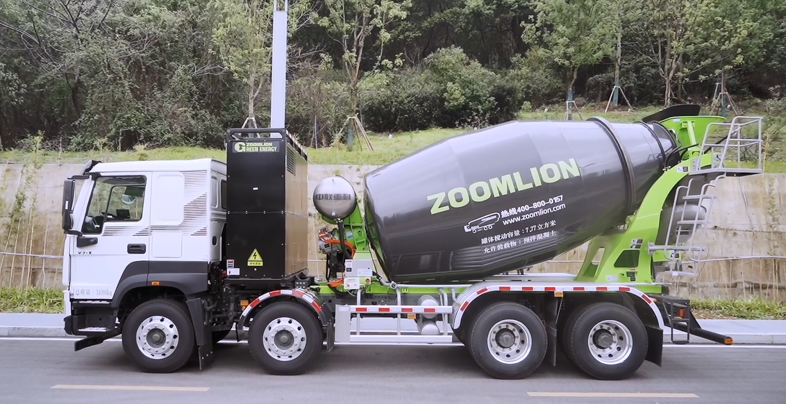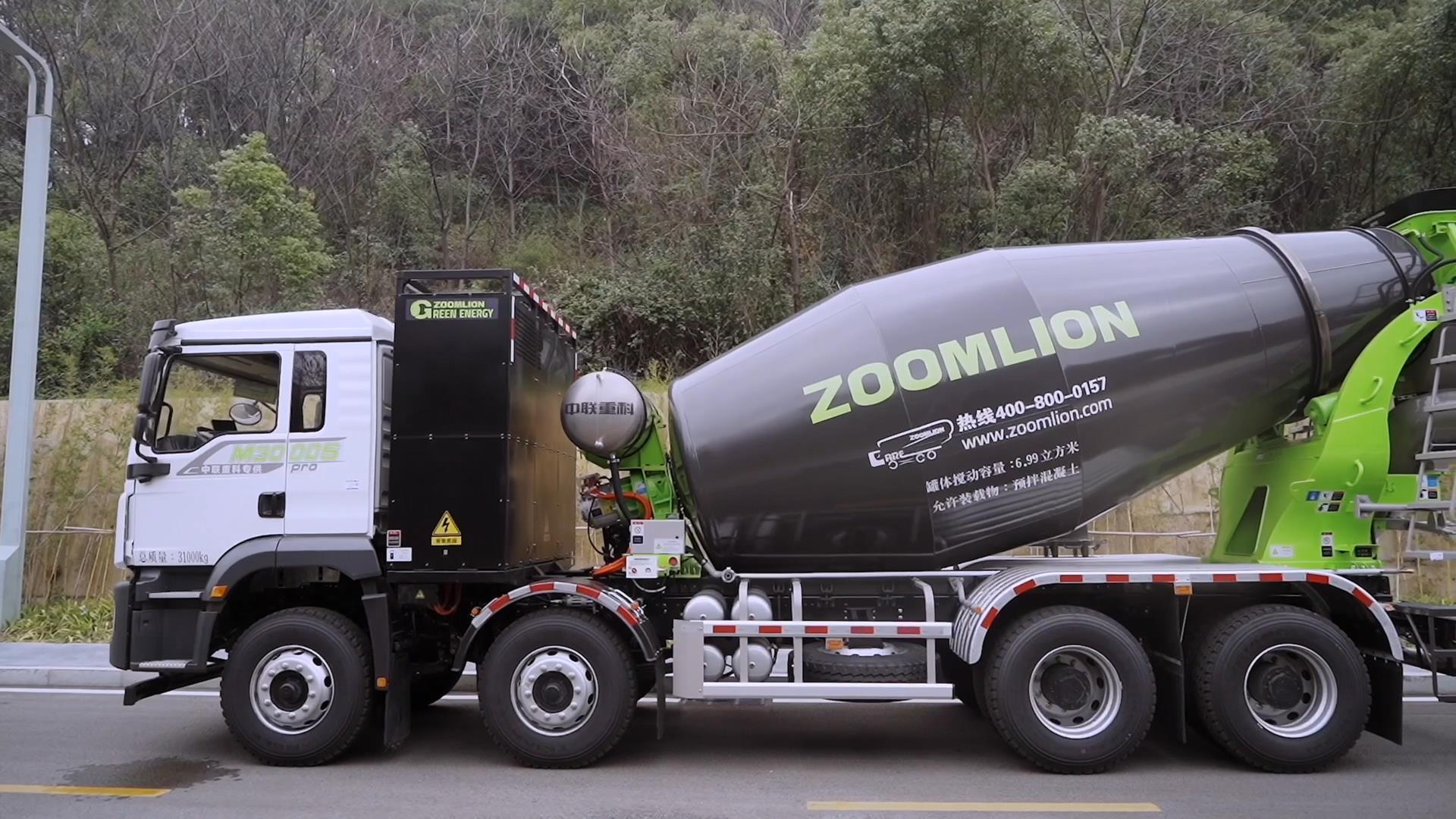 ▲中聯(lián)重科打造的輕量化純電動攪拌車