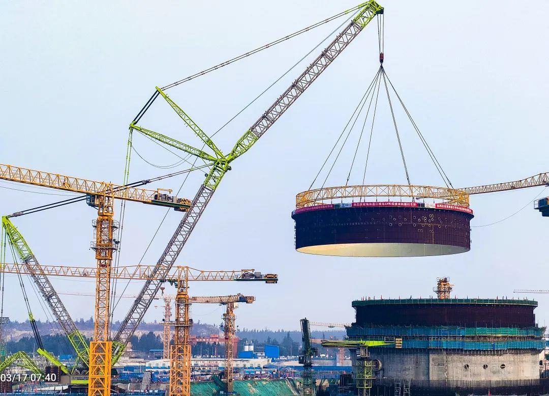 3月17日8時(shí)08分,海南昌江核電4號(hào)機(jī)組核島反應(yīng)堆廠房?jī)?nèi)殼鋼襯里模塊四吊裝就位,歷時(shí)3時(shí)10分,整體吊裝過程安全、可控,中聯(lián)重科ZCC32000履帶吊圓滿執(zhí)行任務(wù),助力施工節(jié)點(diǎn)較專項(xiàng)計(jì)劃提前25天完成,為實(shí)現(xiàn)年內(nèi)雙堆穹頂?shù)跹b奠定了堅(jiān)實(shí)基礎(chǔ)。