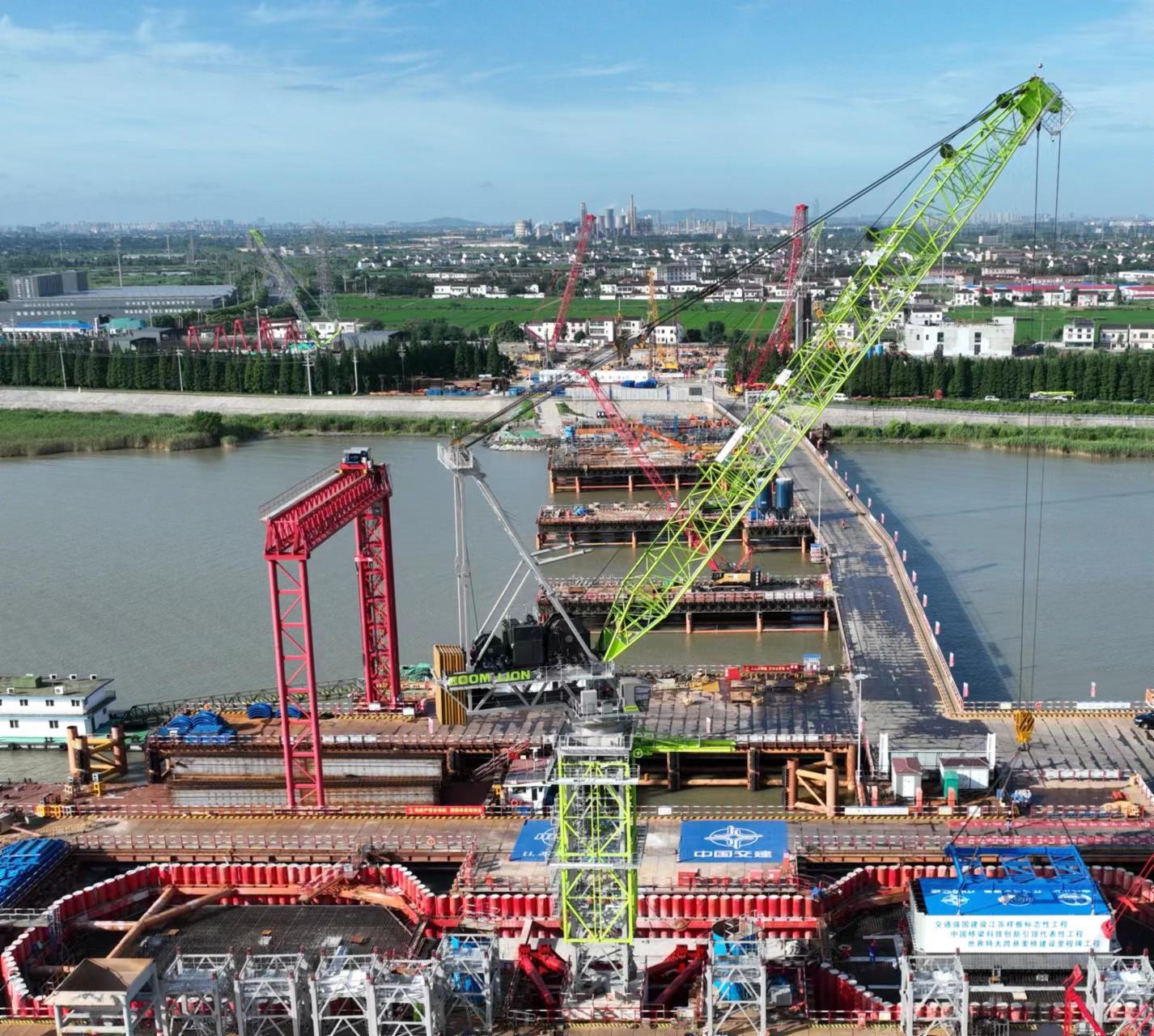 助力蛟龍出江!中聯(lián)重科塔機(jī)首吊“世界**一跨”張靖皋長(zhǎng)江大橋