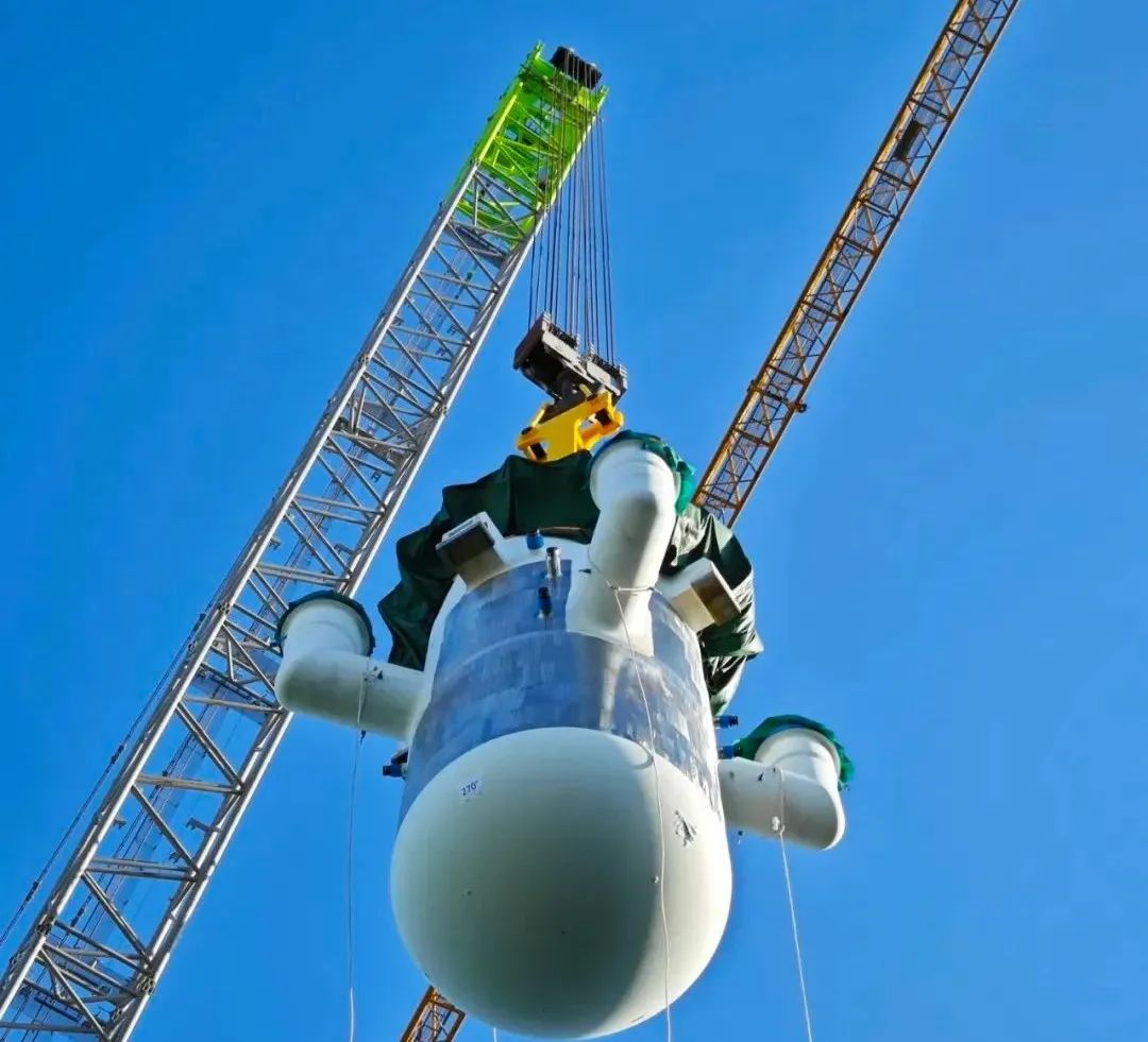 玲龍一號反應(yīng)堆核心模塊也被稱作“玲龍之心”,是玲龍一號的核心部件。為確保工程質(zhì)量,克服天氣復(fù)雜多變、設(shè)備穩(wěn)定性要求高等多種困難,項目團隊選擇了中聯(lián)重科ZCC32000起重機來進行此次吊裝,并**終達成了“充分準備,一次成功”的目標。