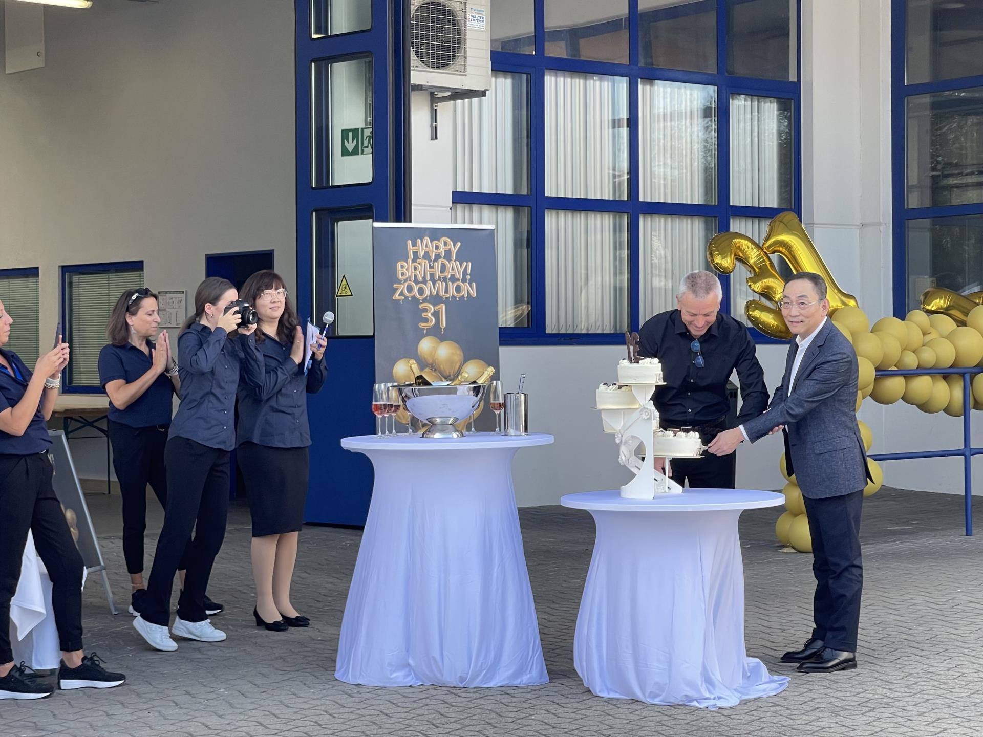 當?shù)貢r間9月28日,中聯(lián)重科董事長、CEO詹純新一行抵達德國紐因伯格視察中聯(lián)重科m-tec公司。時值中聯(lián)重科成立三十一周年司慶日,詹純新董事長與m-tec員工一起共慶公司生日,并發(fā)表致辭向全球30多個國家的3萬名員工致以問候與祝福。