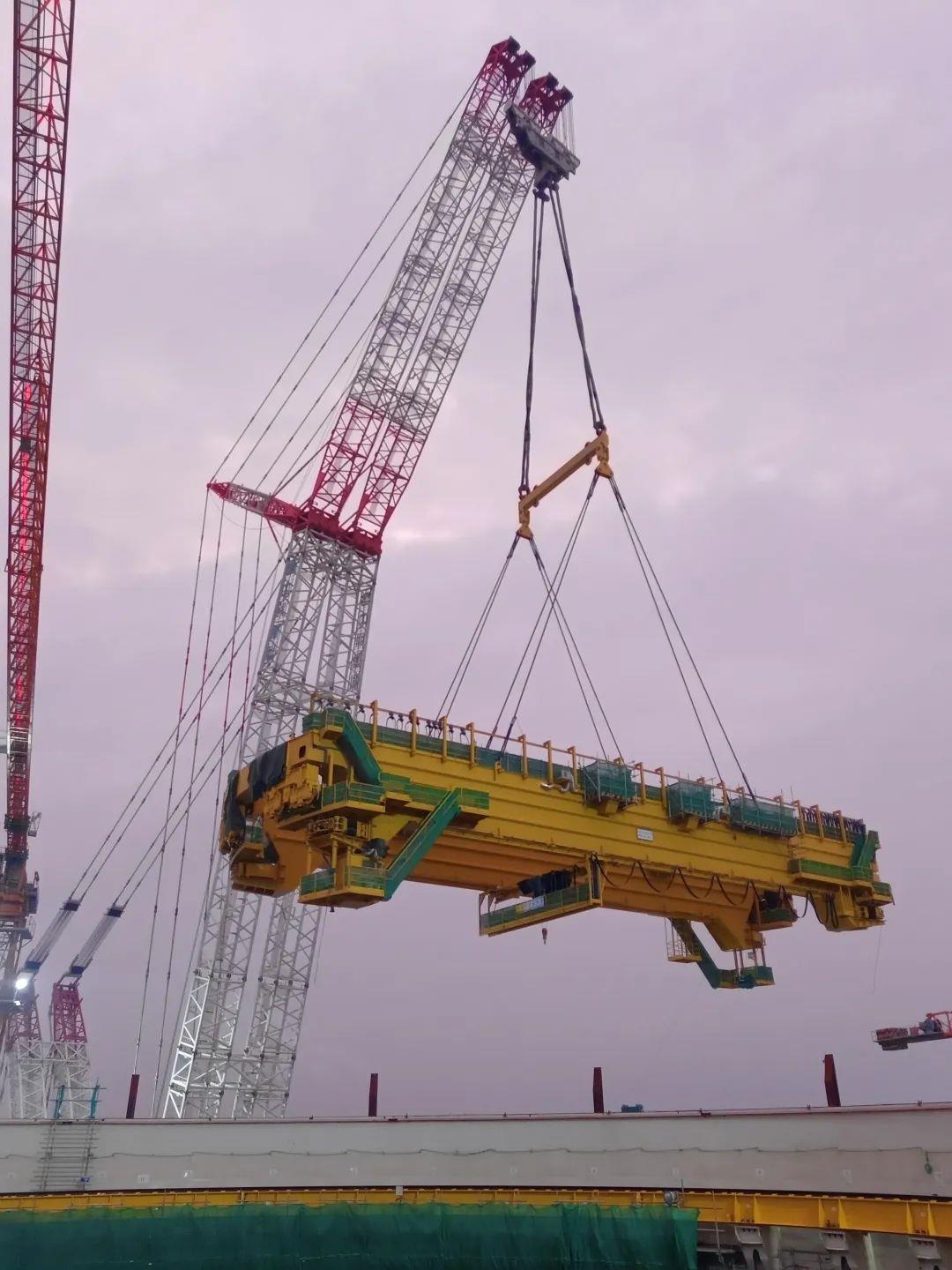▲中聯(lián)重科起重機(jī)正在進(jìn)行昌江核電4號機(jī)組環(huán)吊橋架整體吊裝(圖片源于“華能昌江核電”公眾號)