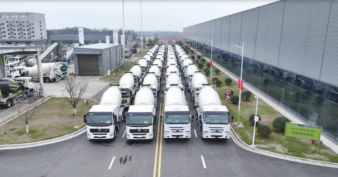 ▲中聯(lián)重科新能源攪拌車批量發(fā)貨