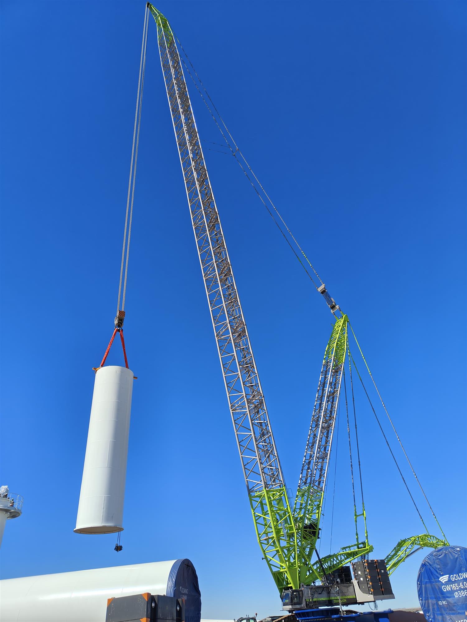 中聯(lián)重科1250噸級(jí)履帶起重機(jī)完成交付后,立即投入到當(dāng)?shù)刂攸c(diǎn)風(fēng)電項(xiàng)目建設(shè)中。當(dāng)?shù)貢r(shí)間上午10:05分,在項(xiàng)目工地上,隨著現(xiàn)場(chǎng)指揮員一聲令下,中聯(lián)重科履帶起重機(jī)將重達(dá)107噸的風(fēng)機(jī)塔筒平穩(wěn)吊起,然后將塔筒順利安裝在基座上,整個(gè)吊裝過(guò)程銜接緊密、井然有序,為后續(xù)風(fēng)機(jī)的安裝工作奠定了堅(jiān)實(shí)基礎(chǔ)。中聯(lián)重科的高品質(zhì)智造裝備以出色的實(shí)戰(zhàn)表現(xiàn),贏得非洲客戶(hù)的高度評(píng)價(jià)。