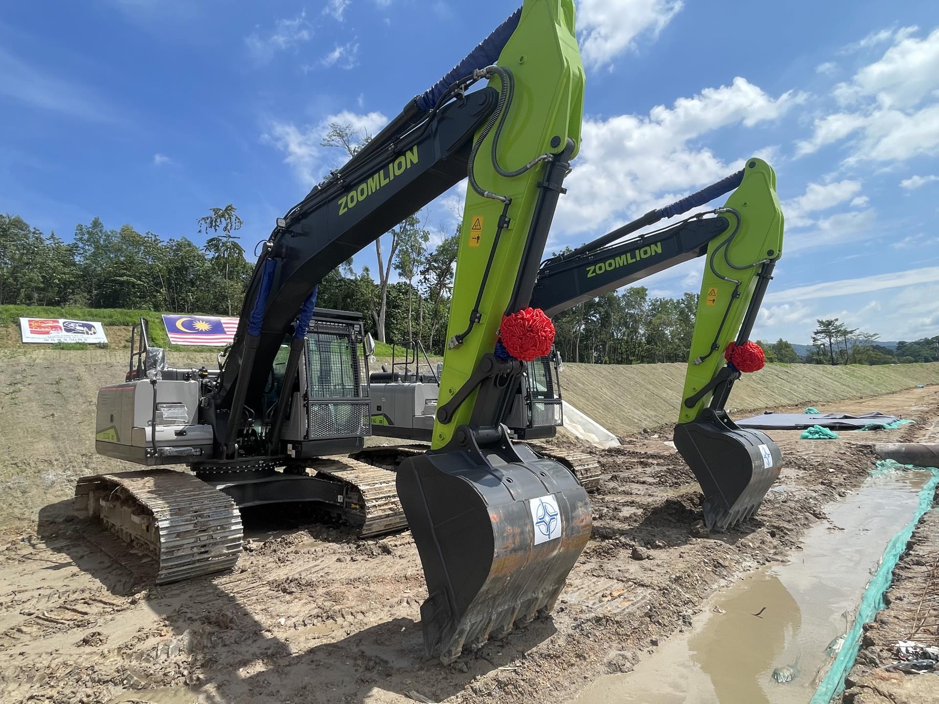 當地時間6月19日下午,馬來西亞東海岸鐵路項目鵝嘜車站動工儀式在吉隆坡北部的鵝嘜隆重舉行。儀式上,中聯(lián)重科多款挖掘機“戴”著紅花傲立活動現場,在接下來的施工中,將為項目建設提供強大的設備保障。