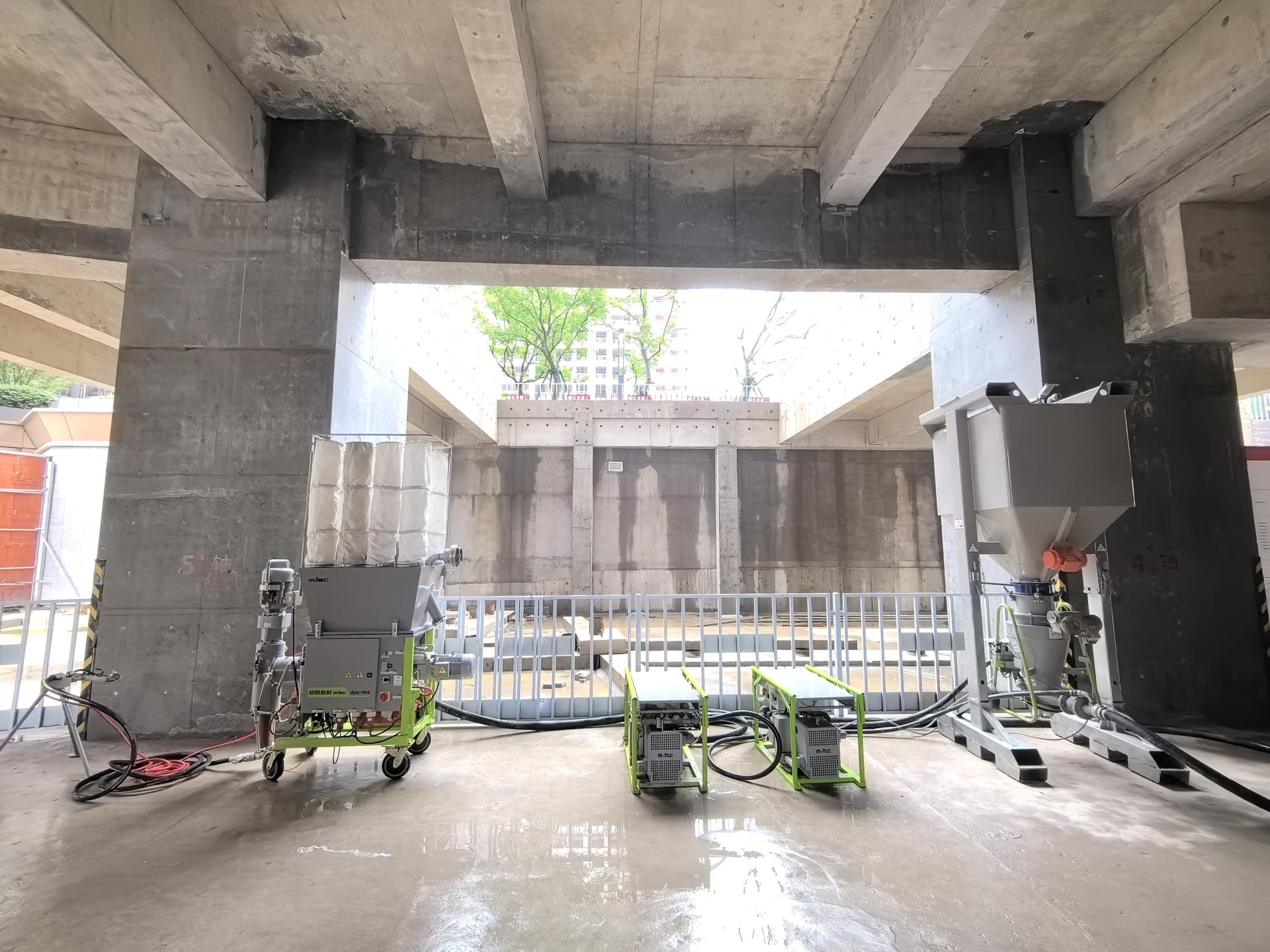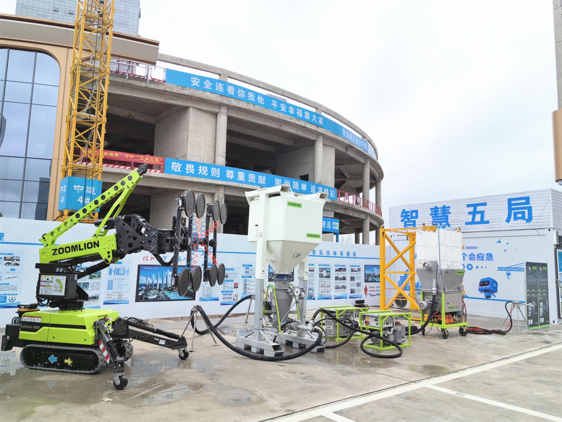 據(jù)介紹,中聯(lián)重科為項(xiàng)目量身打造的墻面機(jī)械化施工解決方案——“可機(jī)施水泥基輕質(zhì)抹灰砂漿+GDP/Duomix+機(jī)械化施工的新工藝工法”,在多環(huán)節(jié)運(yùn)用傳感器聯(lián)動(dòng),實(shí)現(xiàn)了“智能化運(yùn)作,一鍵啟?!保┕がF(xiàn)場(chǎng)無粉塵排放,無干粉濕漿落地,無需清洗輸送管道,具有安全、高效、綠色環(huán)保等顯著優(yōu)勢(shì)。