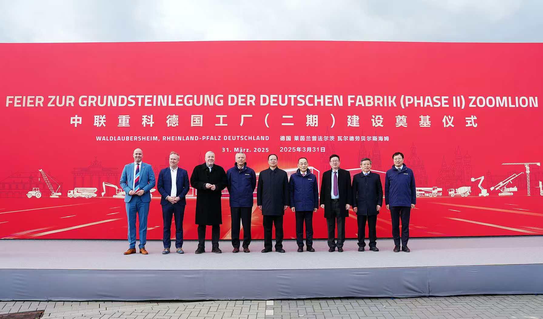 當?shù)貢r間3月31日,中聯(lián)重科德國工廠二期奠基儀式在德國瓦爾德勞貝爾斯海姆舉行,將擴建廠房進行產(chǎn)業(yè)拓展升級,打造集產(chǎn)品展示、銷售、生產(chǎn)和服務于一體的綜合性海外生產(chǎn)基地,持續(xù)加速企業(yè)全球化發(fā)展。率湖南省代表團訪問德國的湖南省委副書記、省長毛偉明,德國聯(lián)邦議院議員喬·溫加頓博士,中國駐法蘭克福總領事黃昳揚,中聯(lián)重科董事長、CEO詹純新出席并致辭。