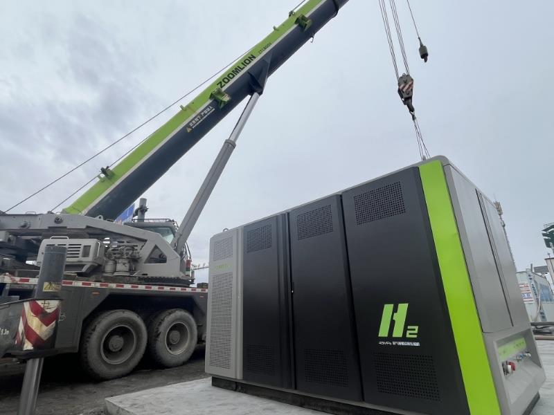 ▲中聯(lián)重科氫氣液驅(qū)壓縮機在安陽項目現(xiàn)場