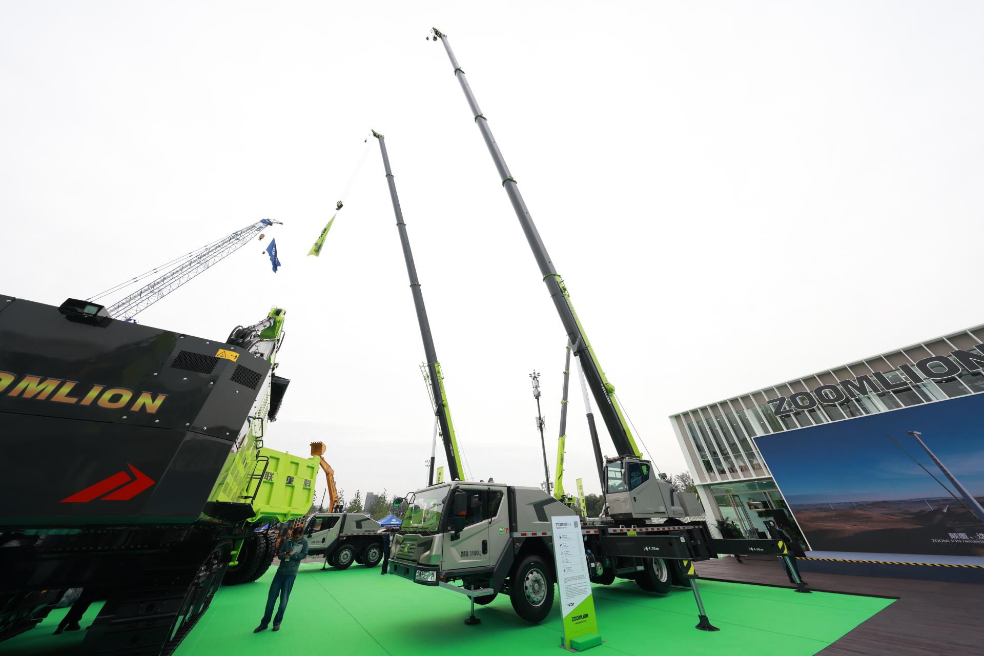 隨車起重機(jī)ZLT3500V501則擁有超廣作業(yè)幅度、超長(zhǎng)伸臂高度、超高起重穩(wěn)定性,高效靈活、性能強(qiáng)勁;該產(chǎn)品擁有20米極致臂長(zhǎng)和8米支腿跨距,展示出極強(qiáng)的作業(yè)靈活性,搭載的雙聯(lián)液壓系統(tǒng),卷?yè)P(yáng)起升速度快而穩(wěn),復(fù)合動(dòng)作一氣呵成。此外,還有**大布料高度可達(dá)72.1米,行業(yè)**穩(wěn)的73米混凝土泵車,以及操控精準(zhǔn)、起重穩(wěn)定的汽車起重機(jī),這些明星產(chǎn)品成為展會(huì)現(xiàn)場(chǎng)的人氣擔(dān)當(dāng)。