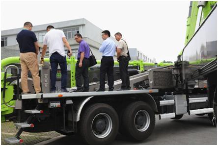 ▲客戶親自登上中聯(lián)重科4.0設(shè)備觀摩體驗(yàn)。