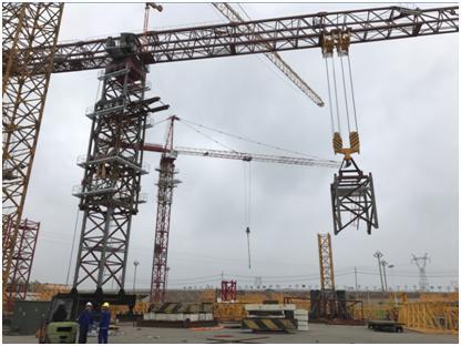 ????????據(jù)了解,6臺塔機(jī)工作區(qū)域?yàn)楹秸緲堑闹行牟糠郑跹b構(gòu)建**重,工作量**大。中聯(lián)重科相關(guān)負(fù)責(zé)人介紹,T2850-120塔機(jī)是中聯(lián)重科的明星產(chǎn)品,其臂長85米,起重量達(dá)120噸,性能穩(wěn)定,安全性高,且平頭塔機(jī)適合機(jī)場塔群施工工況,起重臂剛性好,回轉(zhuǎn)定位準(zhǔn),客戶在綜合考慮了起重性能,供貨周期,性價比等因素后確定采購該型號塔機(jī)。