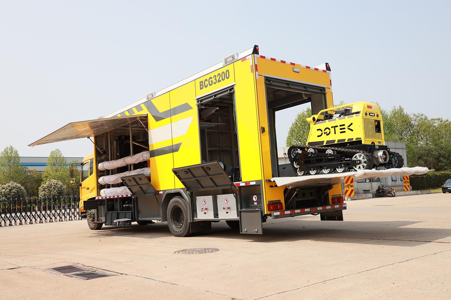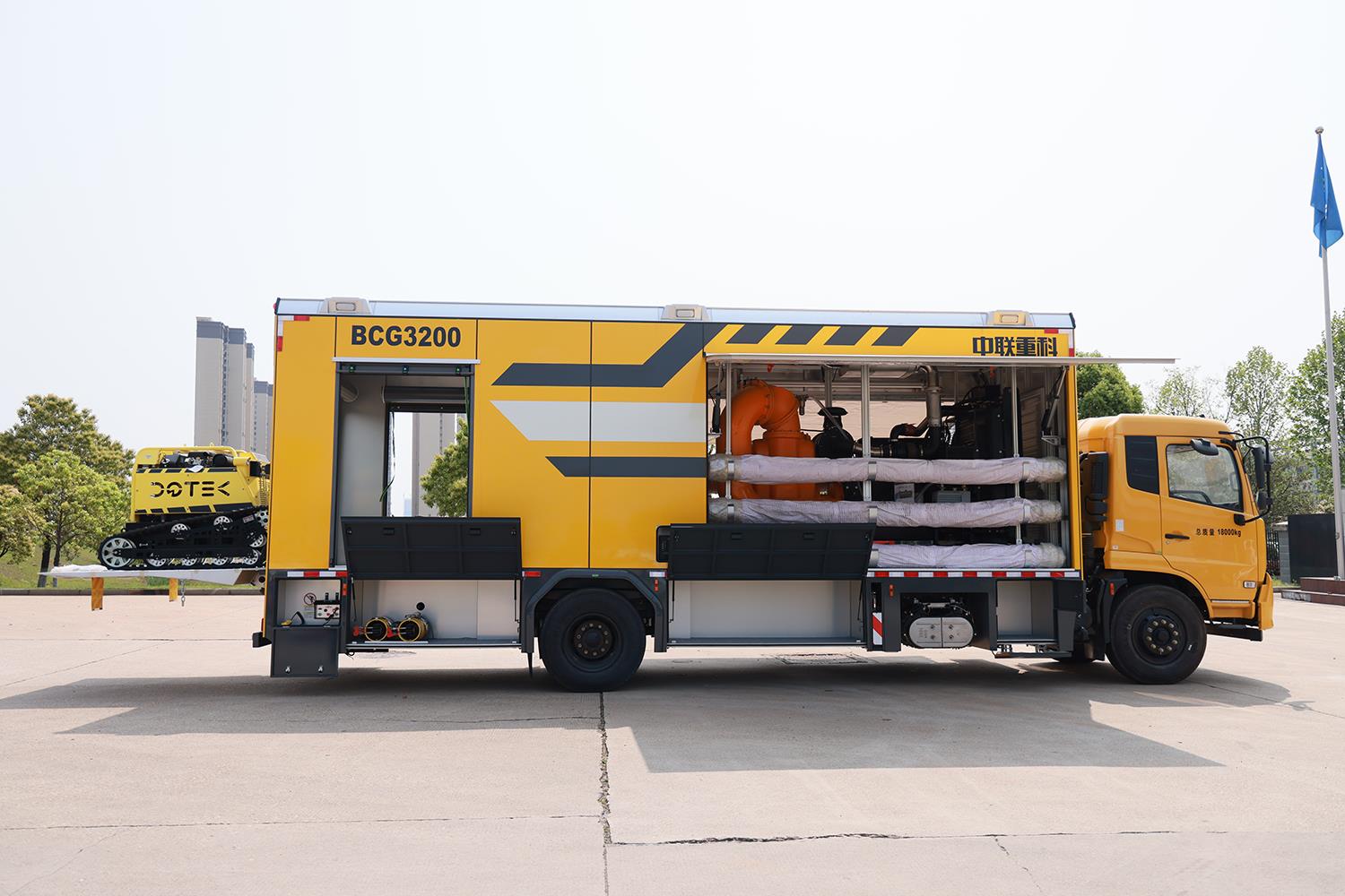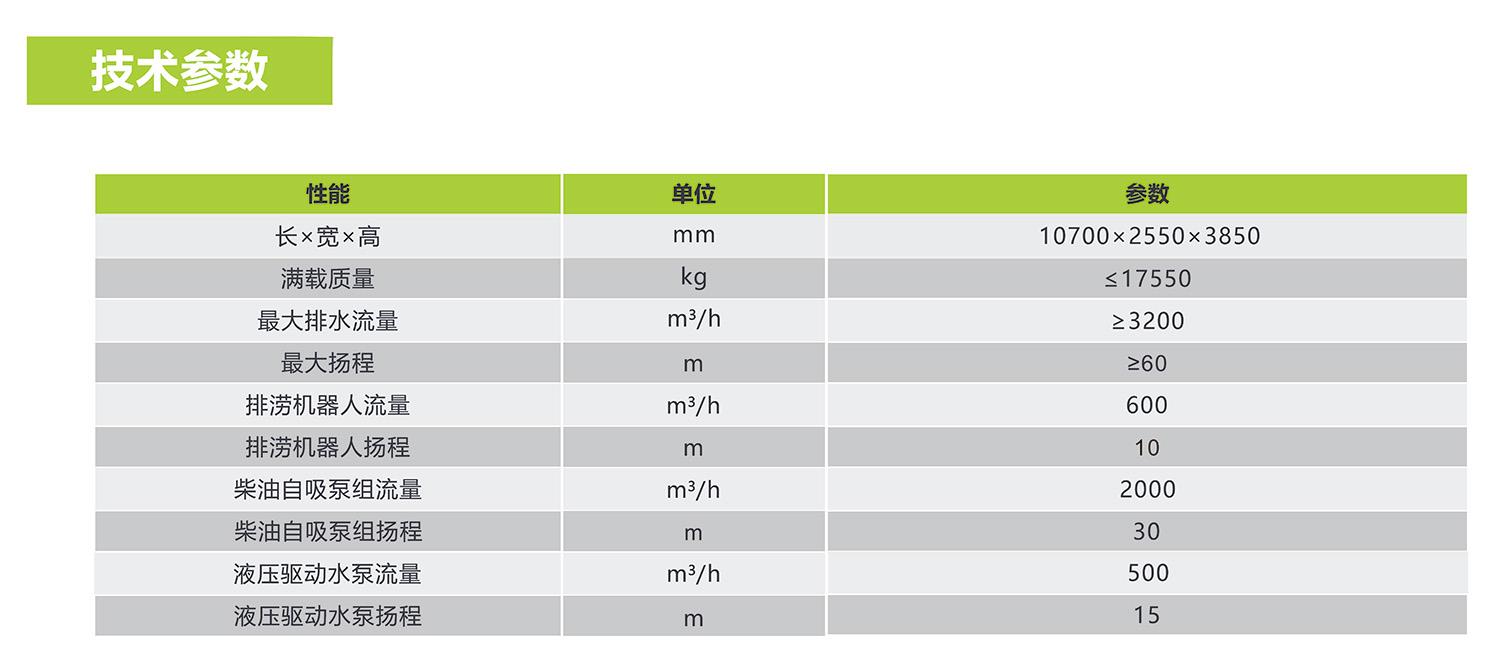 BCG3200型大流量排水搶險車是針對洪澇排水、疏散排水、危廢排水等場景開發(fā)的新型特種車輛,由二類底盤、大功率水泵、大直徑的排水管道、動力單元、排澇機器人、箱體模塊等組成,特別適用于30m以上高揚程排水搶險作業(yè),是抗洪搶險、城市內(nèi)澇、管網(wǎng)排水的主力裝備。