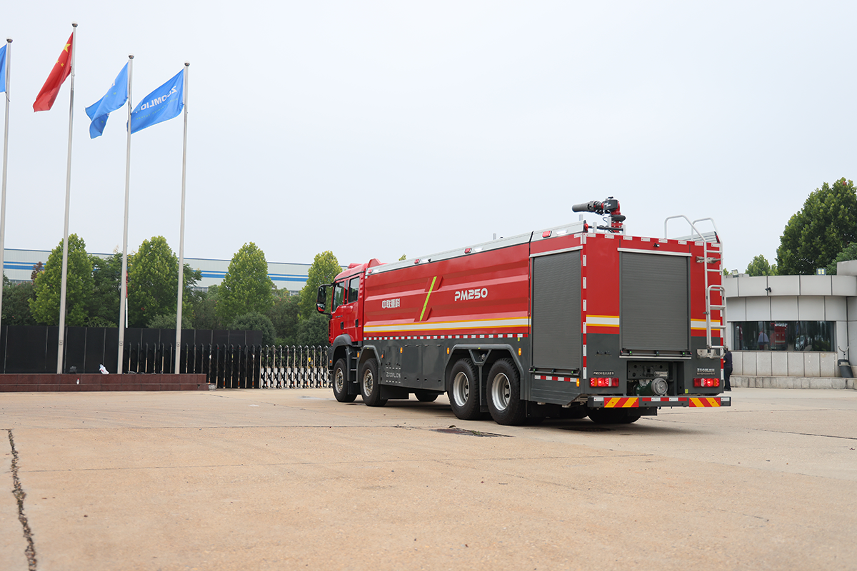 中聯(lián)牌PM250A6型泡沫消防車,整車機(jī)動(dòng)靈活,裝備常規(guī)型B類泡沫系統(tǒng),適合撲救工業(yè)與民用建筑A類火災(zāi),亦可撲救石化,煤化,油庫等B類火災(zāi);全鋁合金車身,自重輕,強(qiáng)度高,防腐蝕性能好,可隨車攜帶多種搶險(xiǎn)救援器材,是城市應(yīng)急救援消防隊(duì)與企業(yè)專職消防單位滅火救援的重要裝備。