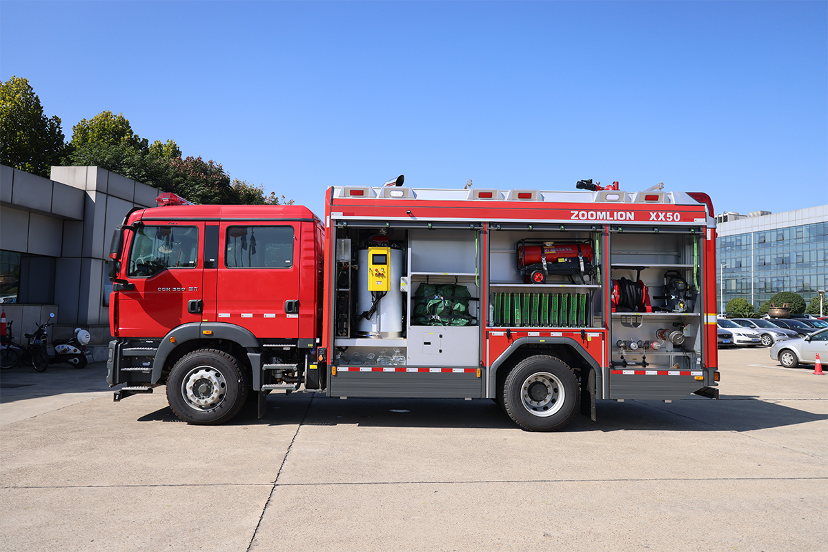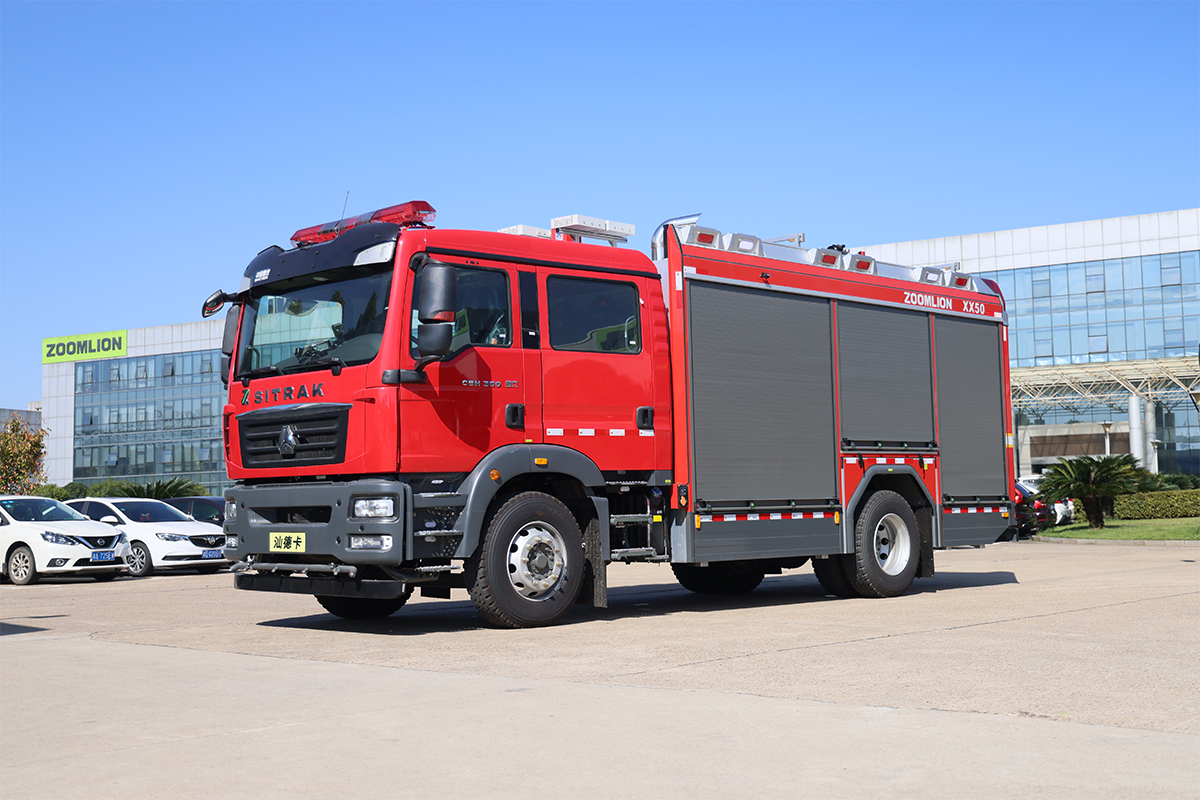 中聯(lián)牌XX50型洗消消防車(chē),是專門(mén)針對(duì)?;鹿示仍⒈晃廴镜娜藛T及地面設(shè)備進(jìn)行洗消而研制的新型特種車(chē)輛。車(chē)輛集成化學(xué)洗消、消防滅火、應(yīng)急照明三大功能模塊,具備強(qiáng)大的綜合救援能力,一車(chē)多用,適用于消防應(yīng)急救援履行滅火和化學(xué)事故處理等任務(wù)。