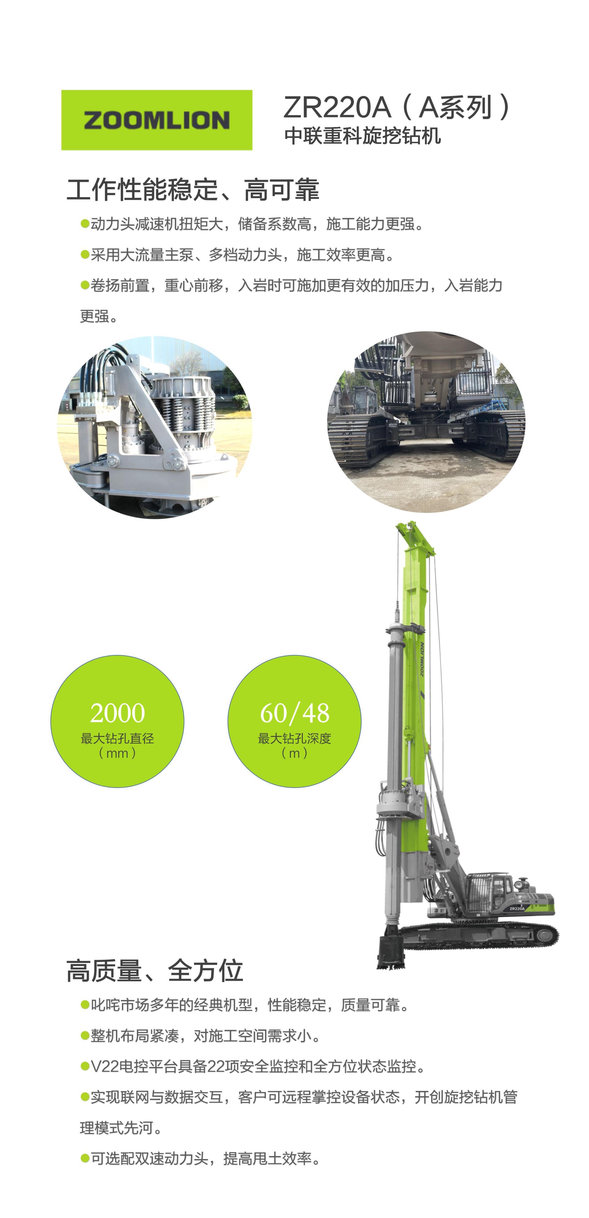 ZR220A旋挖鉆機(jī)是本公司為適應(yīng)市場(chǎng)需求,運(yùn)用多年設(shè)計(jì)制造基礎(chǔ)施工機(jī)械的技術(shù)結(jié)晶并結(jié)合國(guó)際先進(jìn)技術(shù)而開(kāi)發(fā)的高性能、高可靠性的產(chǎn)品。該產(chǎn)品是機(jī)、電、液高度集成的高科技產(chǎn)品,以卓越的操縱性能、強(qiáng)大的鉆進(jìn)及提升能力活躍于我國(guó)基礎(chǔ)建設(shè)的各個(gè)領(lǐng)域,適用于鐵路、公路、橋梁等各類(lèi)建筑的樁基工程。
